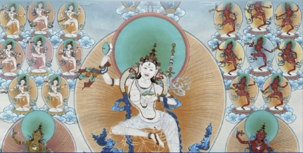 This special one day retreat offered online and also in Southern California, and is the first group event since the closure for the pandemic in 2020. It will offer the extraordinary opportunity to chant and study from Invoking the 100,000 Dakinis, an inspiring Tibetan Buddhist prayer from the Dakini’s Heart Essence Cycle and the Jeweled Garland Chod (Rinchen Trengwa). Invoking the 100,000 Dakinis is a meditation practice to raise radical courage and vivid presence. It invites protection, support and wakefulness within the mandala of the five elemental wisdoms and the meditation of Vajrayogini.